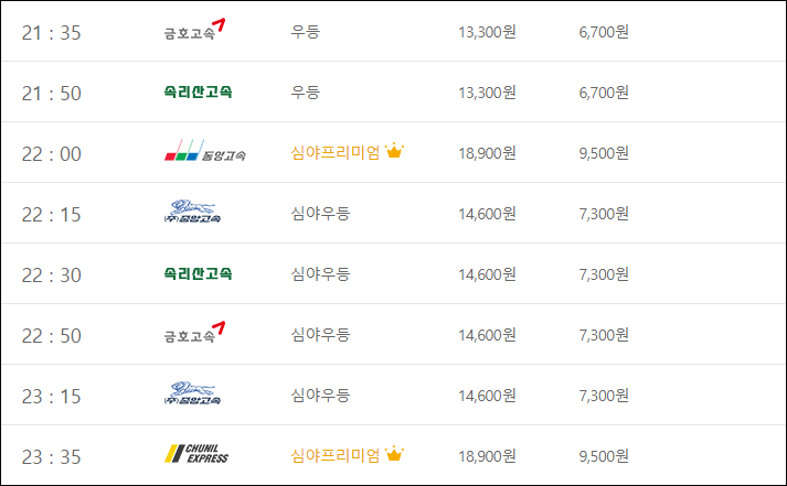 막차 시간 : 당일 24시 5분 출발