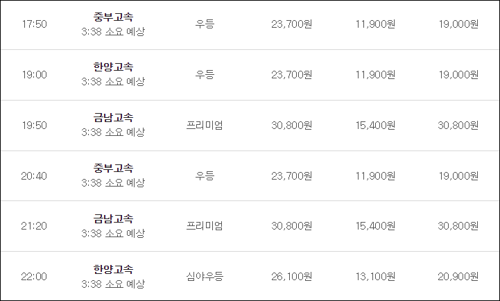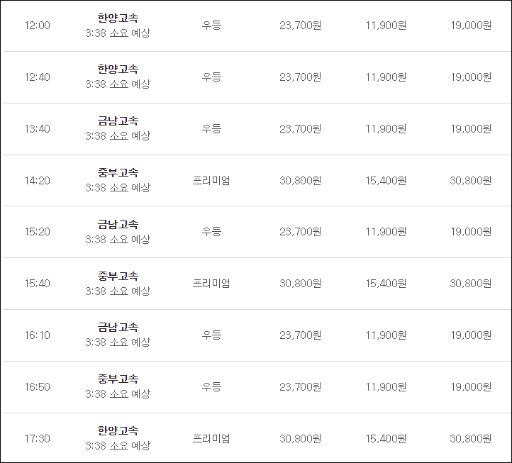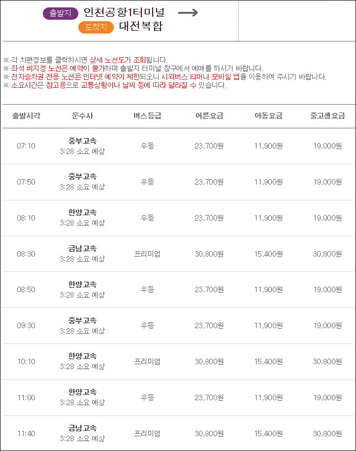 인천공항 대전 리무진 버스 시간표, 요금, 예매