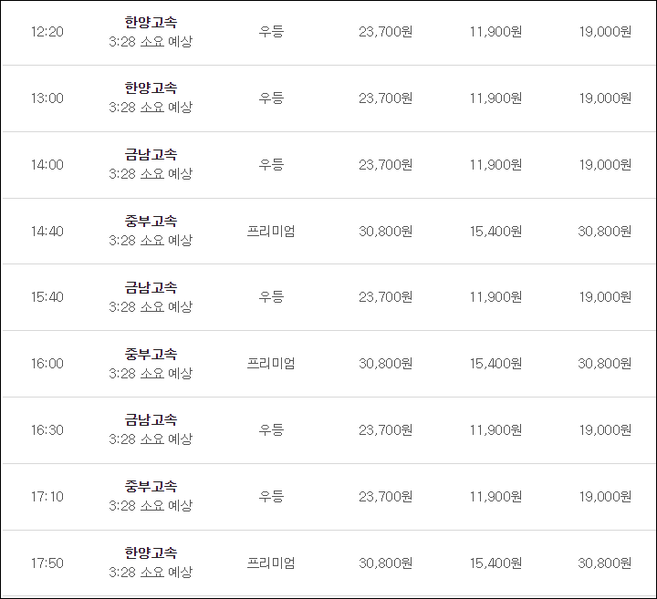 (우등) 어른 23,700원, 청소년 19,000원, 어린이 11,900원