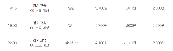 막차 시간 : 밤 22시 출발