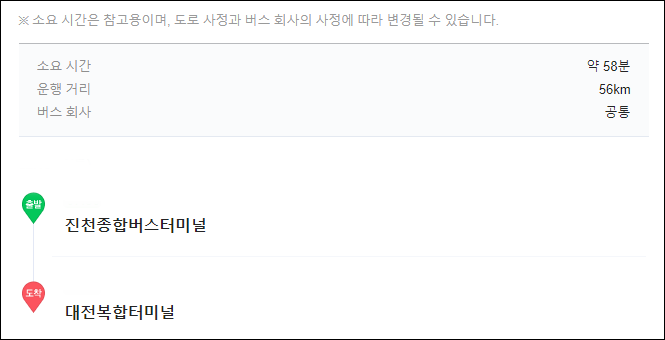 이번에 알려드릴 곳은 진천 대전 복합터미널로 가는 고속버스입니다. 코로나로 인해 평일 및 주말 고속버스 시간이 달라질 수 있으니 화면 가장 아래 링크를 클릭해서 예매사이트에서 정확하게 확인하시길 바랍니다.