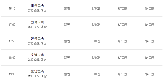 평택 전주가는 시외버스 시간표, 요금, 예매